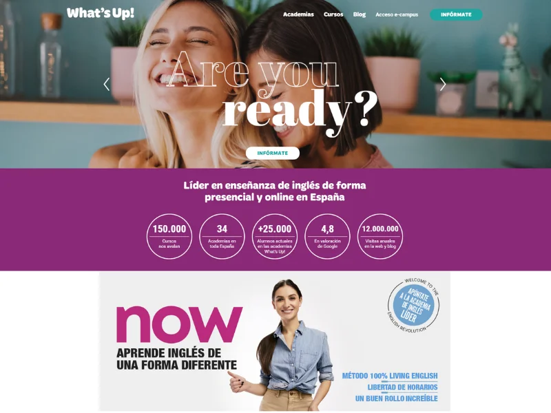 La franquicia What’s Up! Living English es una marca líder por su metodología innovadora 100% Living English, que combina clases presenciales reducidas con actividades de conversación y una potente plataforma online.