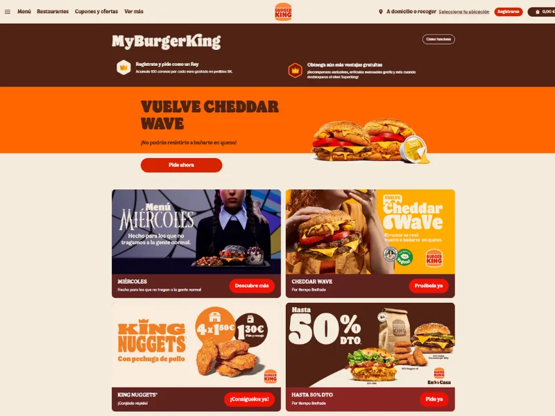 Con más de 70 años, Burger King es una de las marcas con más reconocimiento a nivel global y con presencia en más de 100 países. Ofrece hamburguesas a la parrilla, consiguiendo a un sabor único que la diferencia de la competencia.